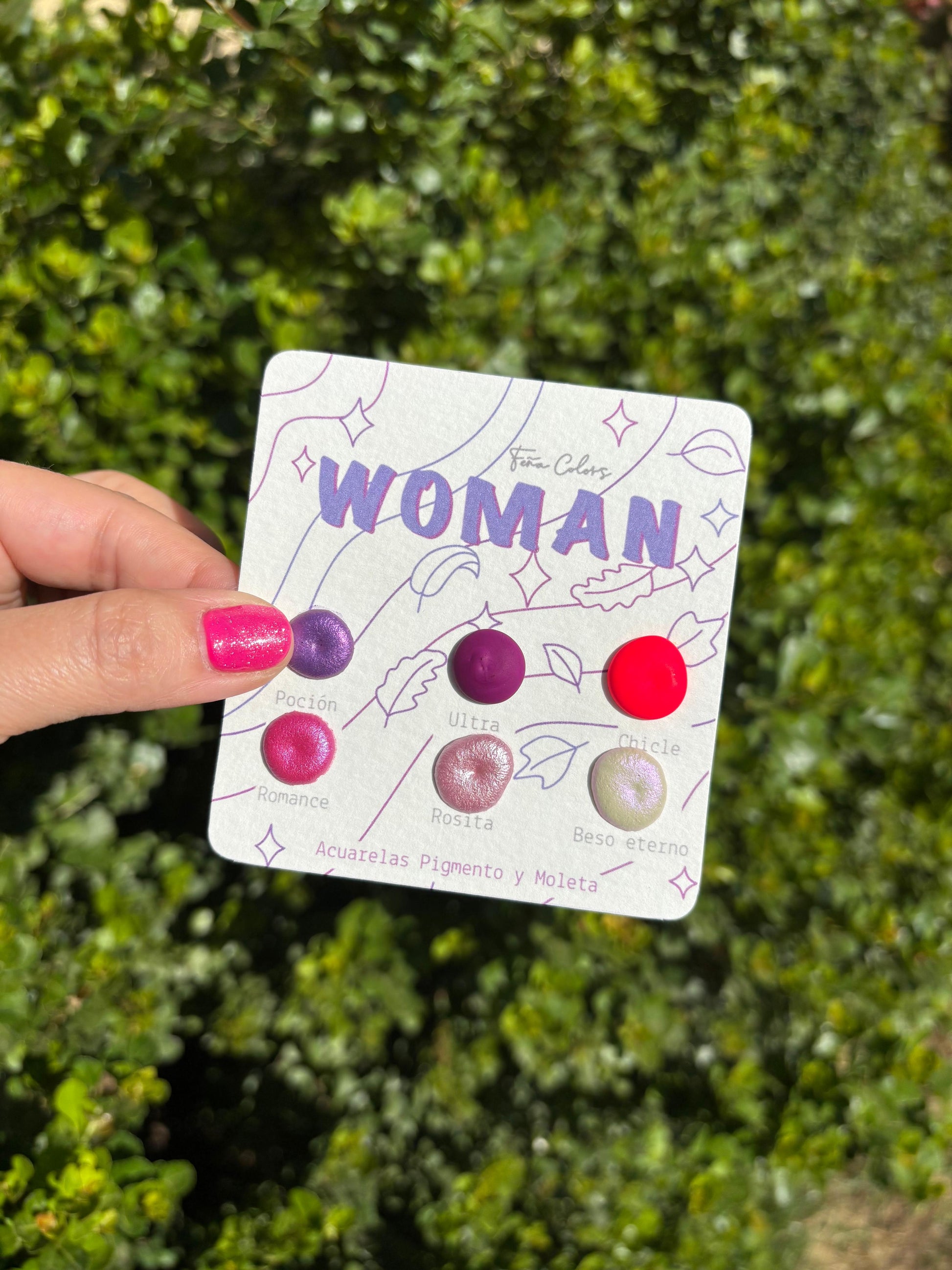 Set de acuarelas de la marca "Pigmento y moleta" en formato Dot card, personalizado para toda Woman, ideales para probar varios colores y empezar a sumergirte en este mundo de color y brillo!